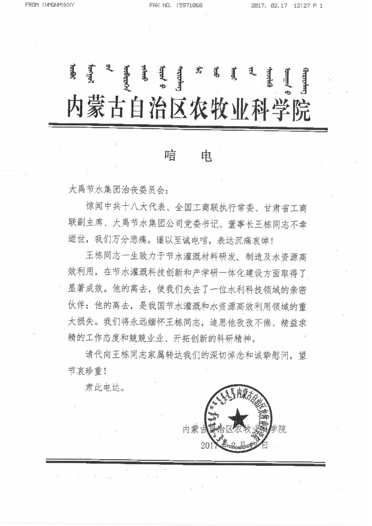 您目今的位置: 网站首页 > 各界人士沉痛吊祭集团公司董事长王栋先生 > 各界人士沉痛吊祭集团公司董事长王栋先生 >
