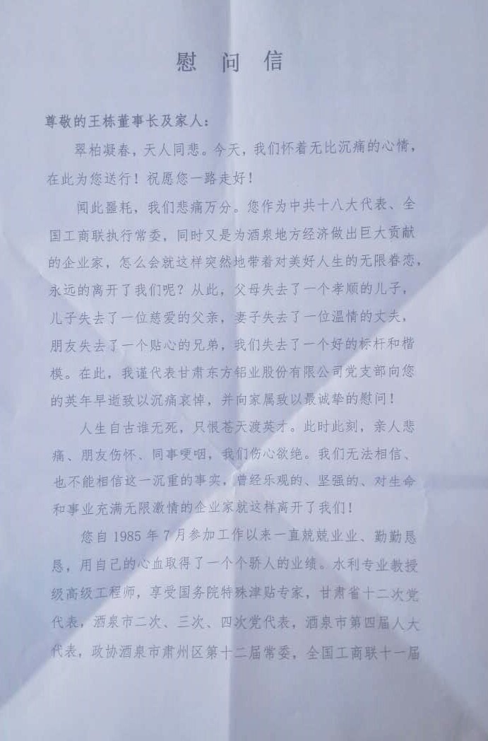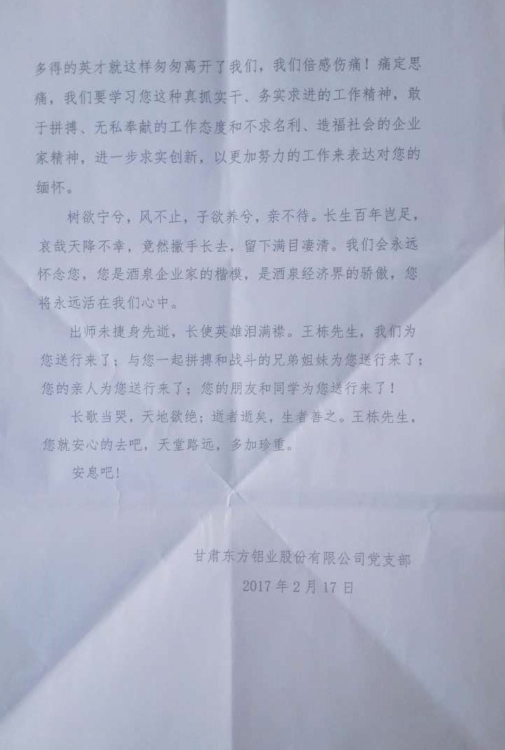 甘肃东方铝业股份有限公司敬挽