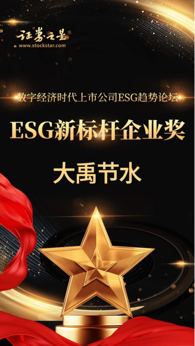 克日,由杭州市西湖区商务局(金融办)、西湖区投资增进局、西湖区古荡街道服务处团结证券之星举行的“数字经济时代上市公司ESG趋势论坛”圆满收官。在本次论坛中,6t体育节水依附在ESG领域的精彩体现,荣获“证券之星ESG新标杆企业奖”奖项。