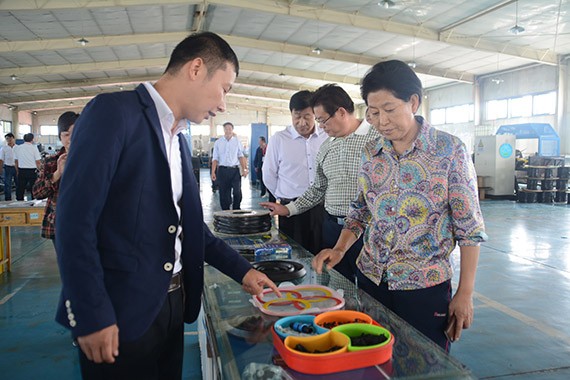 山东省莱芜市政协考察团在6t体育节水集团公司滴灌生产车间考察