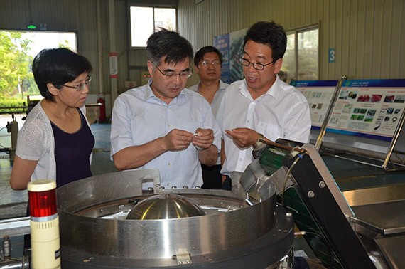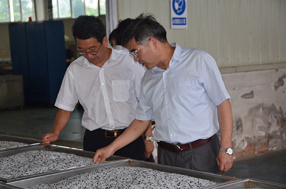 江苏大学党委书记兼校长袁寿其、科技随处长李红、流体中心节水浇灌部部长王新坤一行在6t体育节水(天津)有限公司滴灌生产车间考察