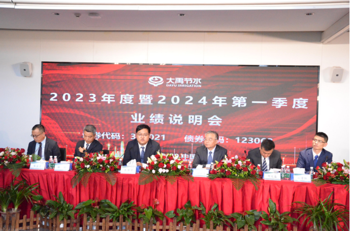 4月30日,6t体育(以下简称“6t体育节水”)2023年度暨2024年第一季度业绩说明会在北京研发中心召开。集团董事长王浩宇,自力董事何文盛,首席科学家、研究院院长高占义,副总裁、董事会秘书陈静,副总裁、财务认真人宋金彦,以及保荐代表人张贵阳等向导嘉宾出席聚会。会上,董事会秘书对2023年度及2024年第一季度的谋划情形做了汇报,与会向导、嘉宾对投资人体贴的问题举行了现场解答。