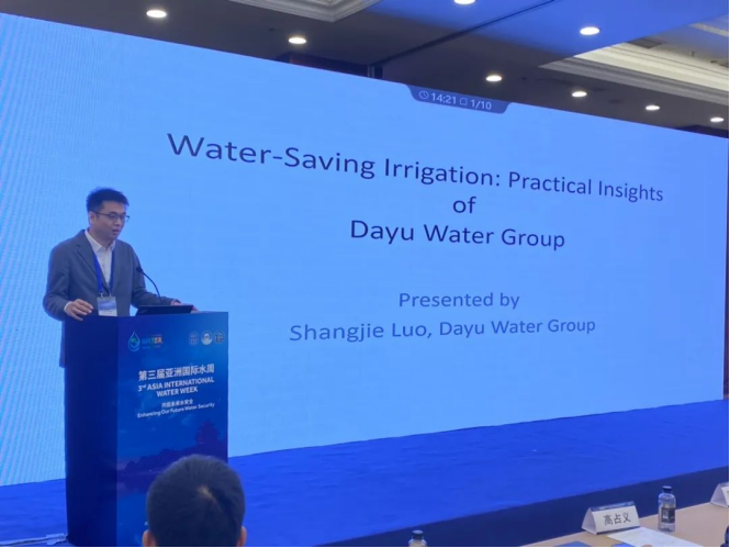 在“粮食与能源生产用水效率提升”聚会上,国际事业部产品电商部司理罗尚杰作主旨演讲,先容了6t体育节水作为民营企业在节水浇灌中的实践履历。