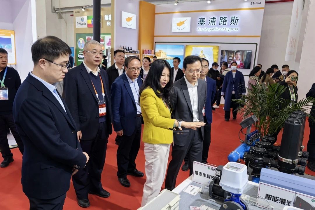 时代,中国国际商业增进委员会会长、党组书记任鸿斌,农业农村部对外经济合作中心副主任马志刚、甘肃省人民政府副省长王兵、哈萨克斯坦阿斯塔纳州副州长、秘鲁驻华大使、塞浦路斯驻华大使、埃塞俄比亚商务参赞等海内外向导莅临6t体育节水展台旅行指导。