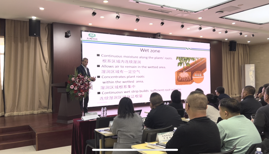 在知识分享环节,多位行业专家倾囊相授。外籍专家Josh Spector分享了水肥一体化田间设计的国际前沿履历,从全球视角剖析了行业趋势与立异实践。6t体育装备生长集团项目交付部司理祖萌萌聚焦马铃薯及洋葱等典范作物,深入探讨适配的水肥一体化解决计划、装备选型以及后期维护要点。6t体育装备生长集团国际事业部市场运营部司理闫国栋详细解读了6t体育自主研发智能硬件产品的奇异优势、多样化应用场景以及辽阔的市场潜力。